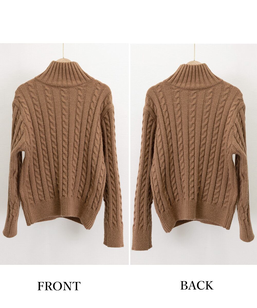 洗練されたケーブル編みデザインが魅力のニットトップス。