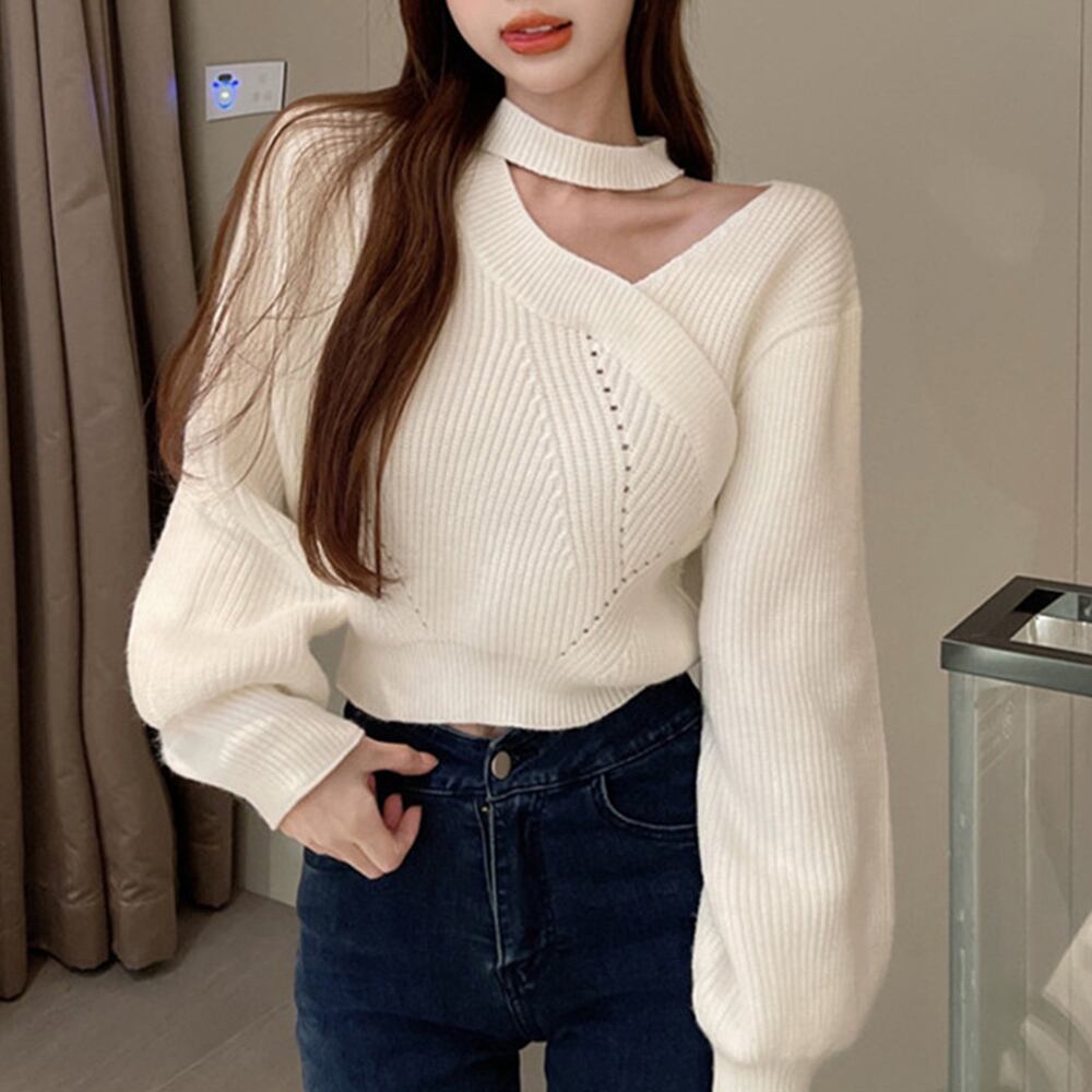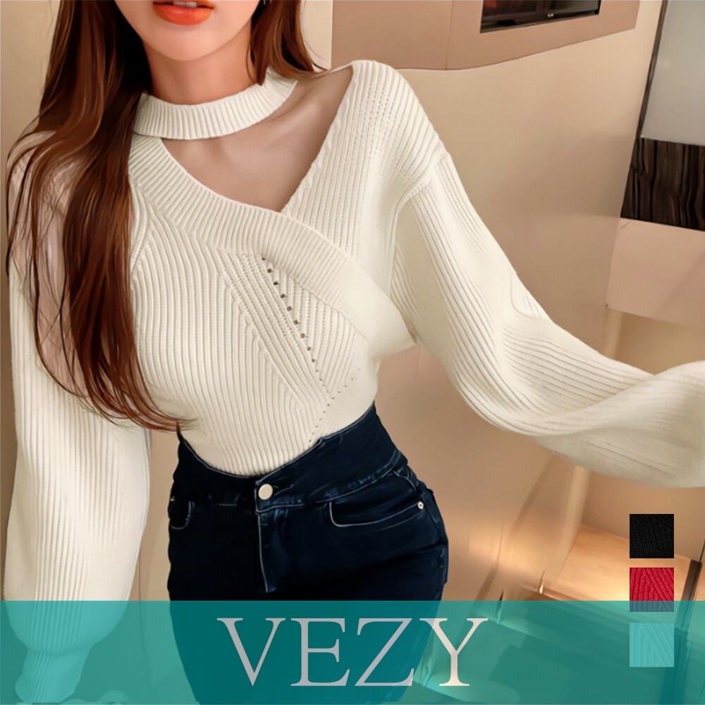 ショート丈 ニットトップスレディース秋冬 大人可愛い ニットソー長袖 セクシー リブニット オフショルダー 韓国ファッション 肩開きトップス ホルターネックニット ニット トップス セーター VEZY ベジー ItemNo.【18148767 】