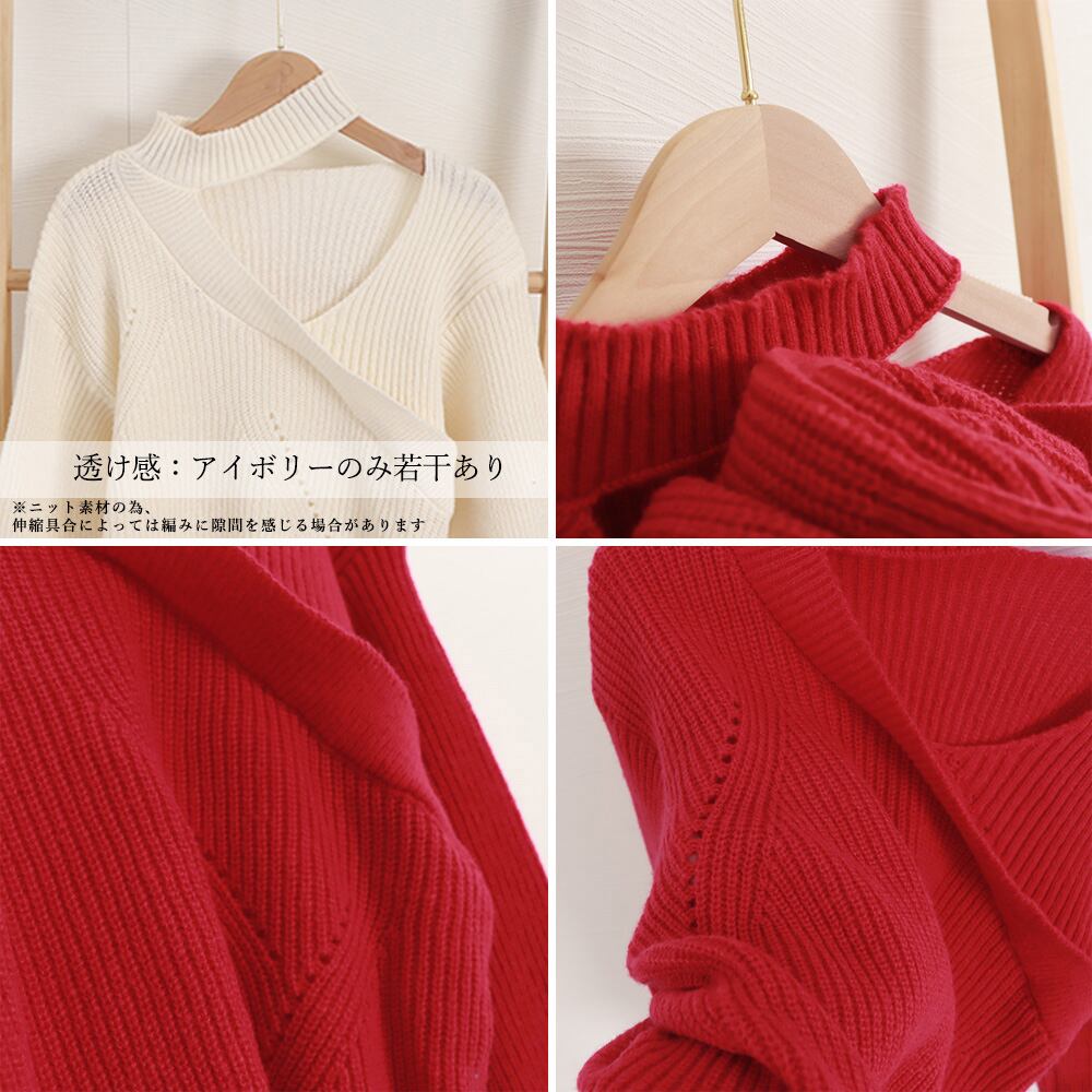大人可愛い ニットソー長袖 セクシー リブニット オフショルダー 韓国ファッション 肩開きトップス ホルターネックニット