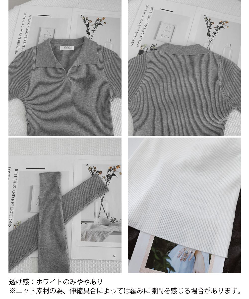 毎日のコーデに取り入れやすい、Vネック×襟付きデザインのベーシックなリブニットトップス。