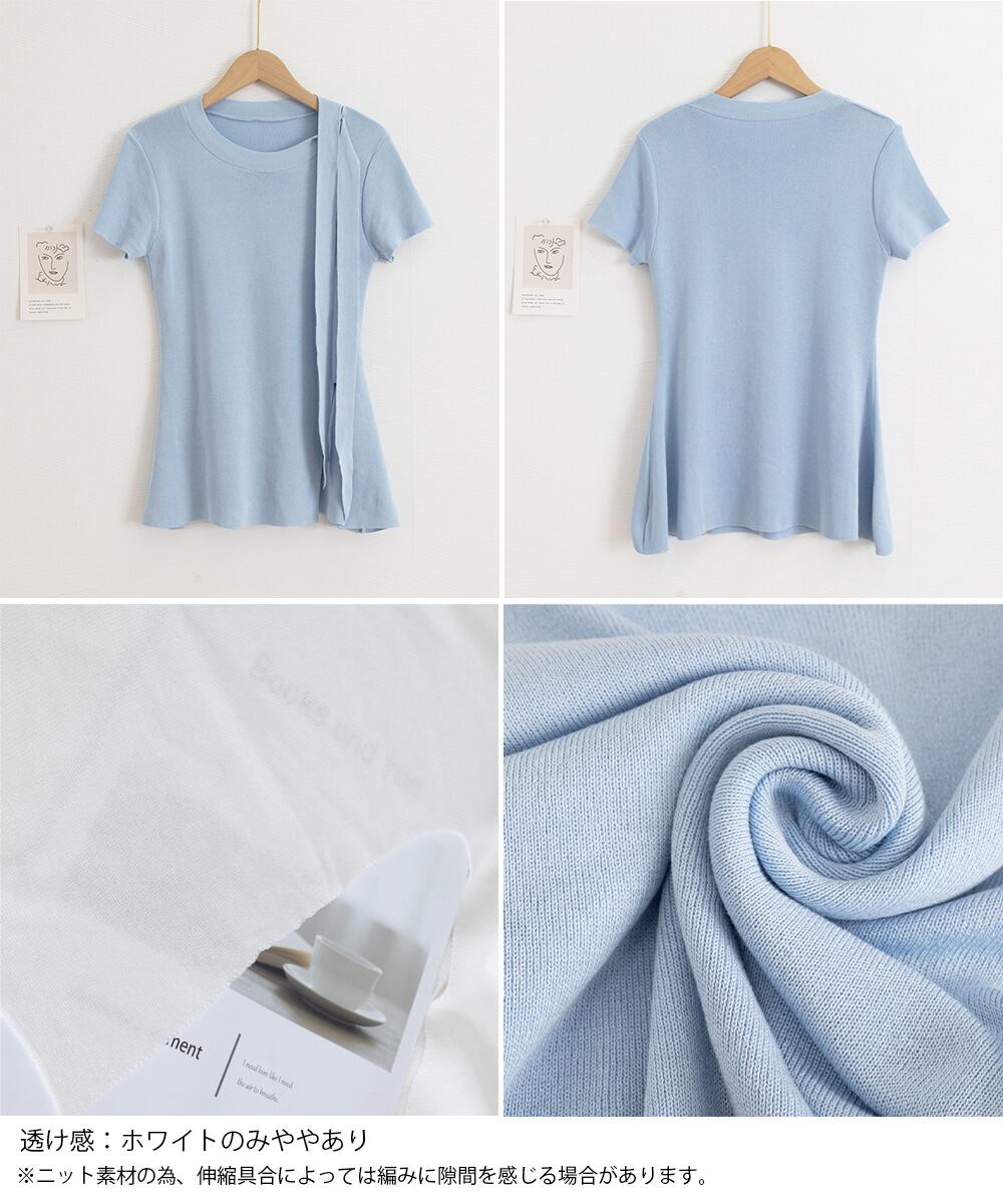 リボン付きニットトップス サイドスリット サマーニット オフィスカジュアル ニットカットソー きれいめ 半袖薄手ニット おしゃれ ニットTシャツ着回し ニット トップス セーター VEZY ベジー ItemNo.【22993825 】