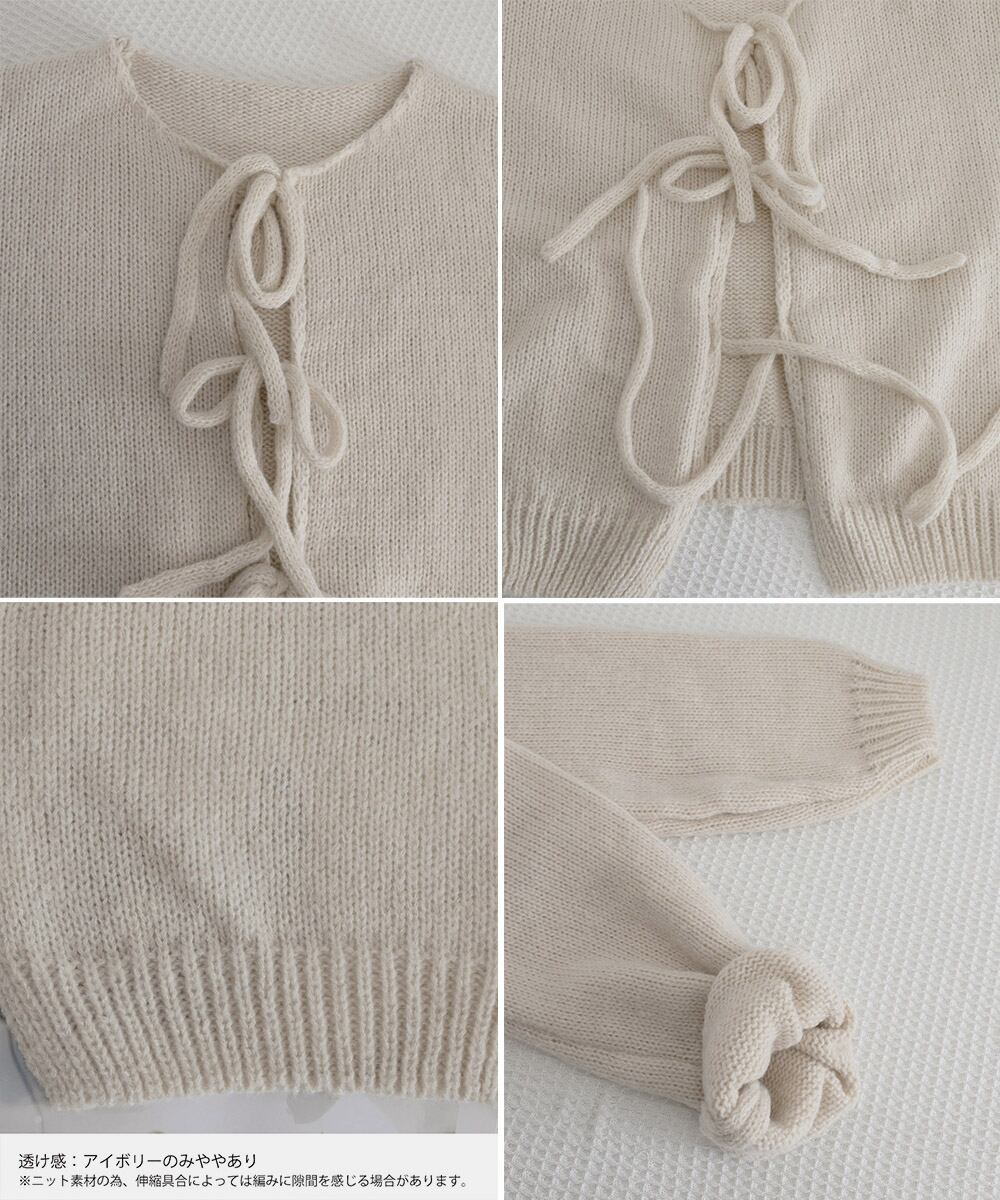 前開きニット羽織り リボンニット着やせ こなれ感ニット人気