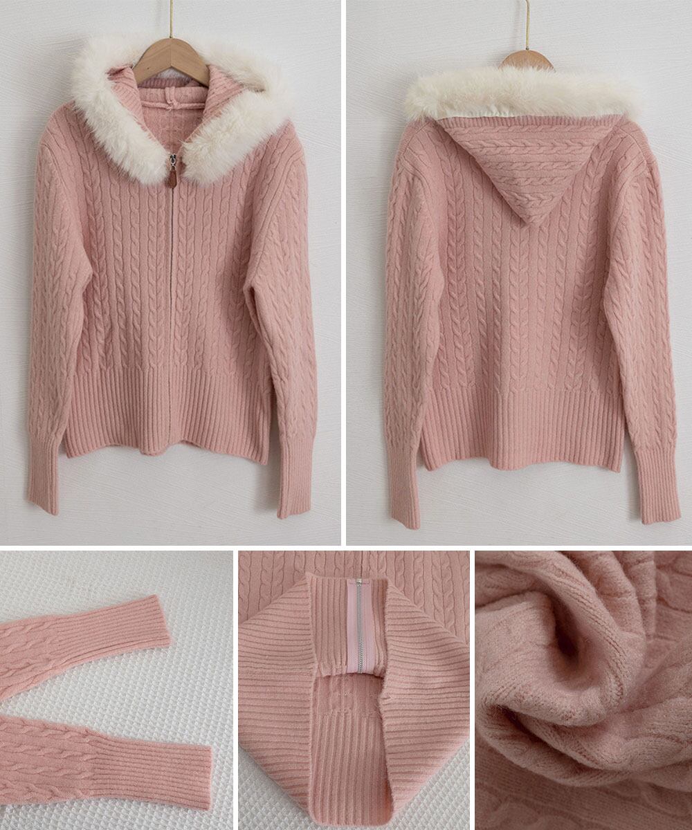 フード付きケーブル編みニットカーディガン ファーフードリブニット長袖 レディース前開きニットトップス きれいめニット大人可愛い 暖かいジップニットフーディセーター ニット トップス セーター VEZY ベジー ItemNo.【23582744 】