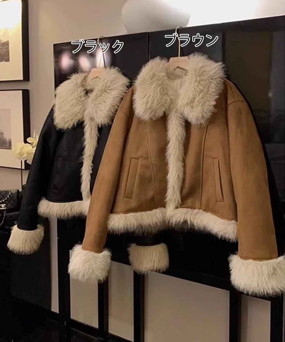 ファー襟ジャケット 防寒厚手アウター女 スエードジャンパー