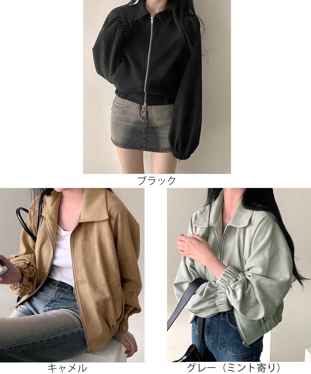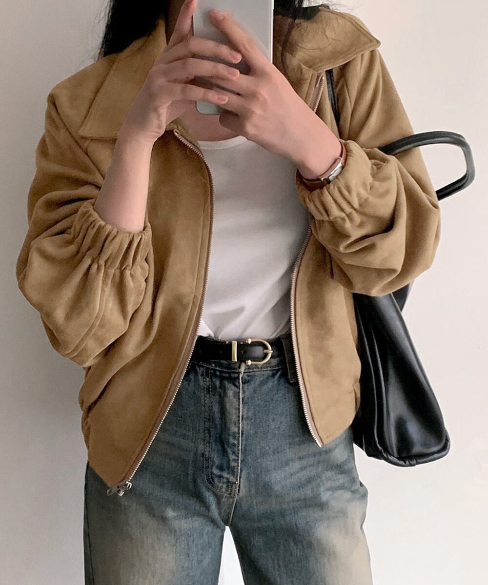 体型カバー 着やせ ジッパージャケット スエードアウター春