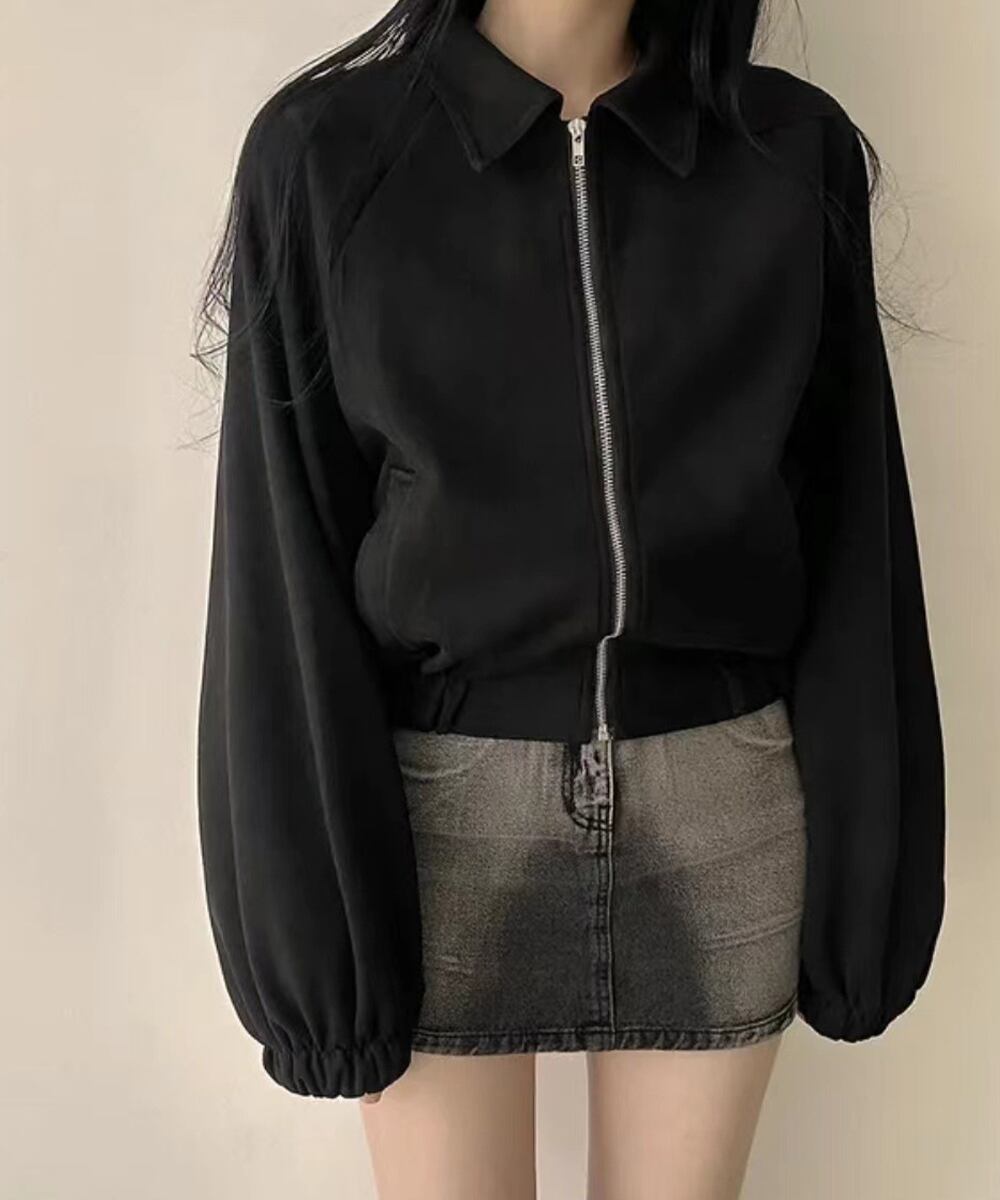 襟付きジップジャケットレディース 秋冬 レトロ ショート丈ブルゾンジャケット カジュアル おしゃれジャンパーゆったり秋服