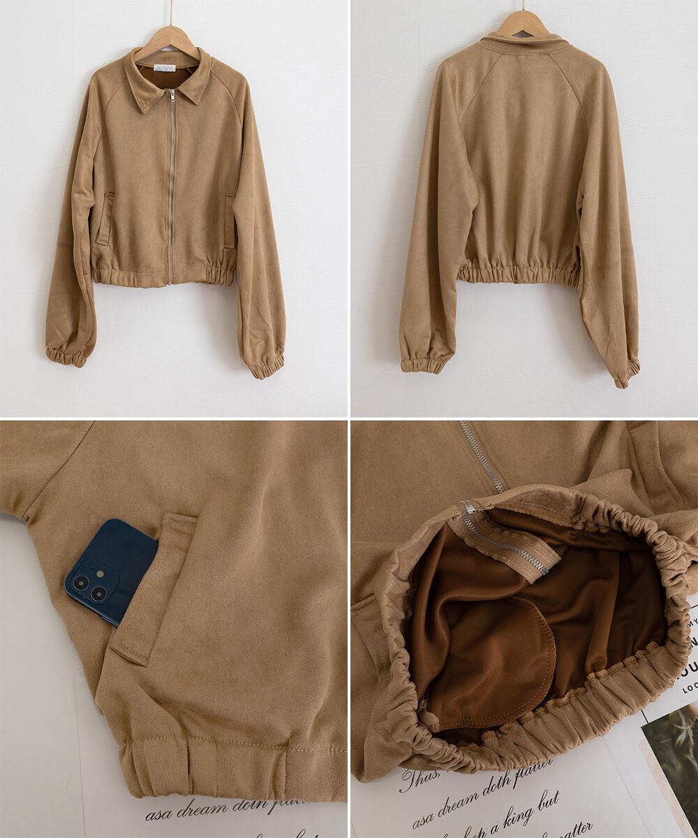 柔らかいマイクロスエード調素材で、手触り抜群のショート丈レディースジャケット。
