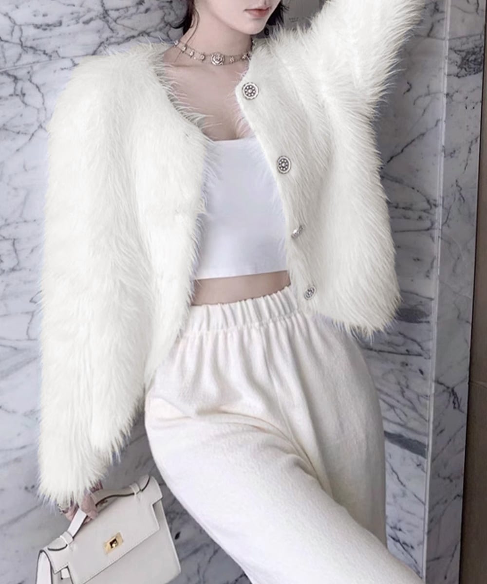 ふわふわの質感が魅力的なショート丈シャギーカーディガン。