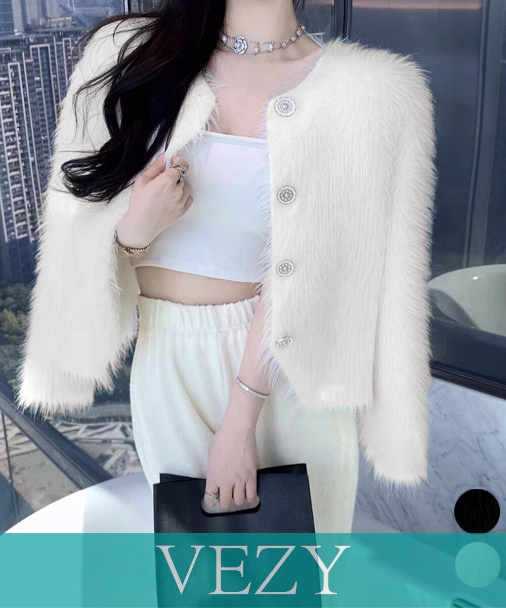シャギーニットカーディガンふわふわ秋冬服 大人可愛い フェザーヤーンカーディガン フェイクファーニットジャケットきれいめニット羽織 長袖ライトアウター アウター コート ジャケット VEZY ベジー ItemNo.【23366097 】