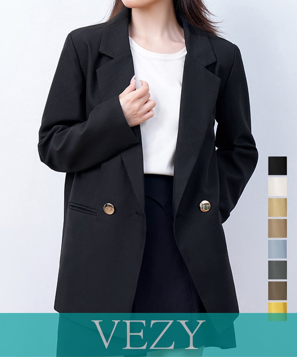 ダブルボタンテーラードジャケットミドル丈 レディースベーシック スーツジャケット オフィスカジュアル ライトアウター 体型カバー入学式卒業式入園式ジャケット 長袖 アウター コート ジャケット VEZY ベジー ItemNo.【23218796 】