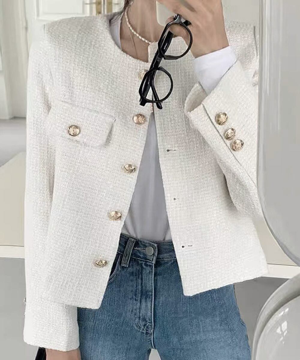 ツイード風 ジャケット レディース韓国風 ジャケット ノーカラー ボタン開き ライトアウター カーディガン きれいめ 長袖 トップス オシャレ大人 上品 アウター コート ジャケット VEZY ベジー ItemNo.【21805700 】