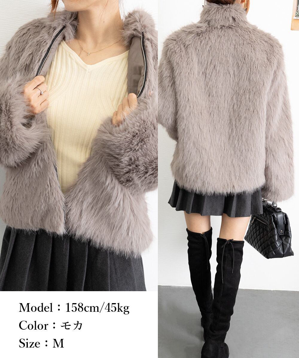 レディース スタンドカラー ショート丈 毛皮ブルゾン ふわふわ ボリュームファーアウター もこもこ きれいめコート暖かい