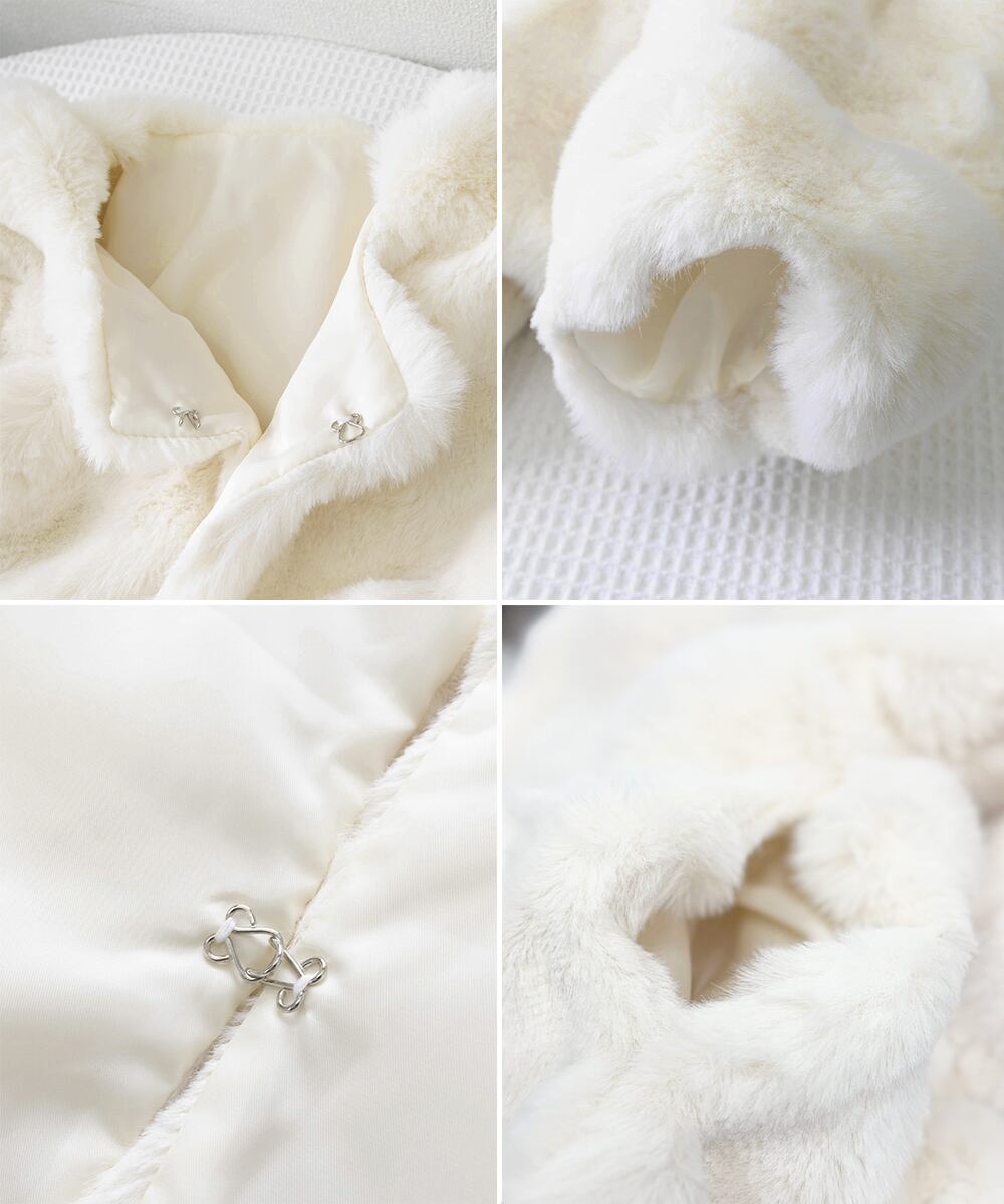 ふわふわとしたボリューム感のあるフェイクファーショートコートです。