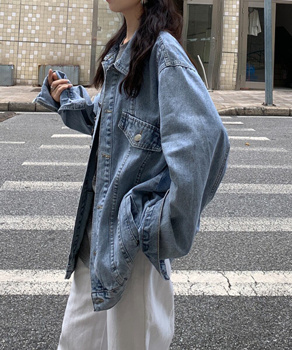 デニムジャケットゆったり Gジャン羽織る ビッグシルエットジャケット ストリート風 デニム羽織 長袖トップス 無地 ジージャン大人カジュアル体型カバー アウター コート ジャケット VEZY ベジー ItemNo.【20881446 】