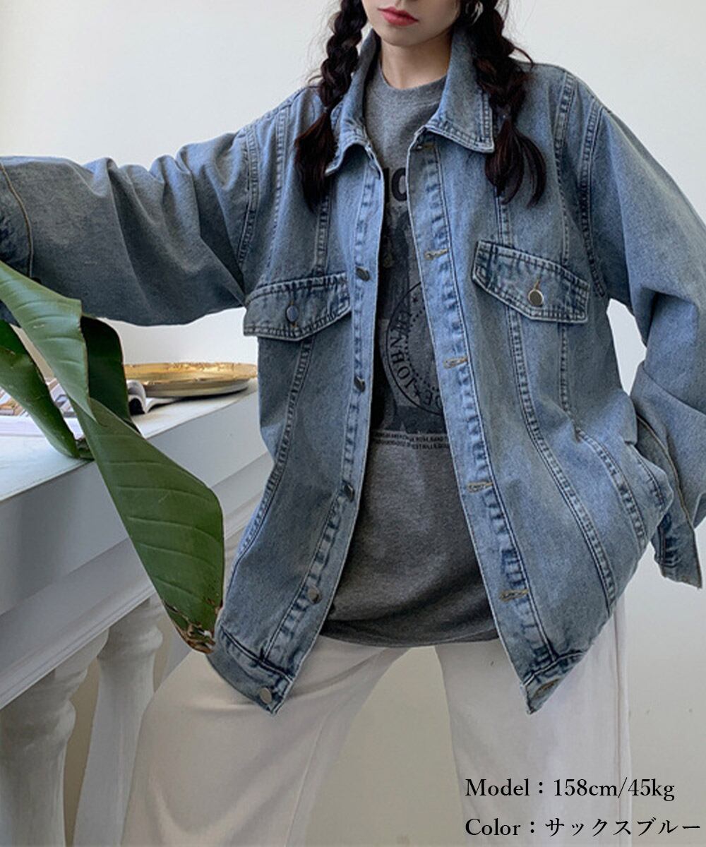 レディース ビッグシルエットジャケット ストリート風 デニム羽織 長袖トップス 無地 ジージャン大人カジュアル体型カバー