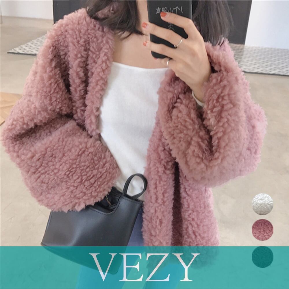 ボアジャケットレディースふんわりブルゾン ボリューム 韓国 ボアカーディガン 暖かい もこもこ アウター 保温 羽織る 防寒 大人カジュアルコート 冬物 長袖上着 アウター コート ジャケット VEZY ベジー ItemNo.【18390998 】
