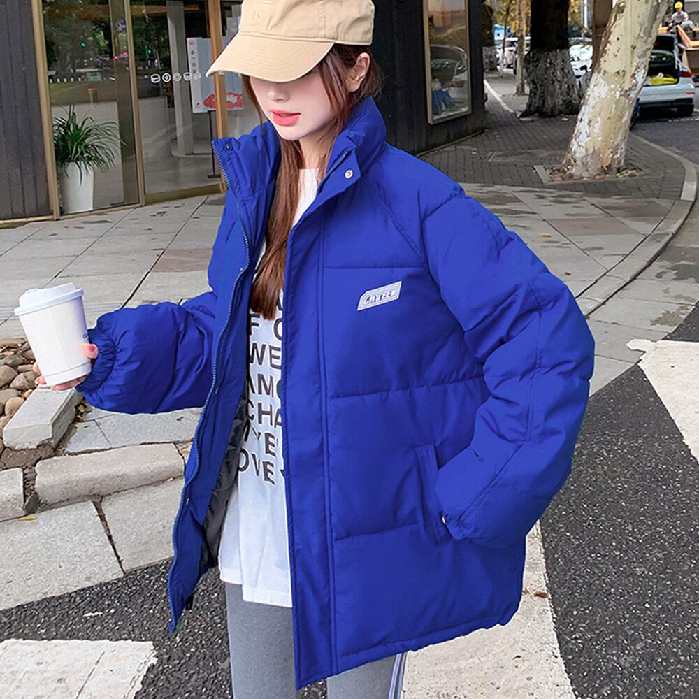 レディース スタンドネック フェイクダウンコート ロゴ付きあったかいアウター カジュアル ブルゾン 体型カバージャンパー