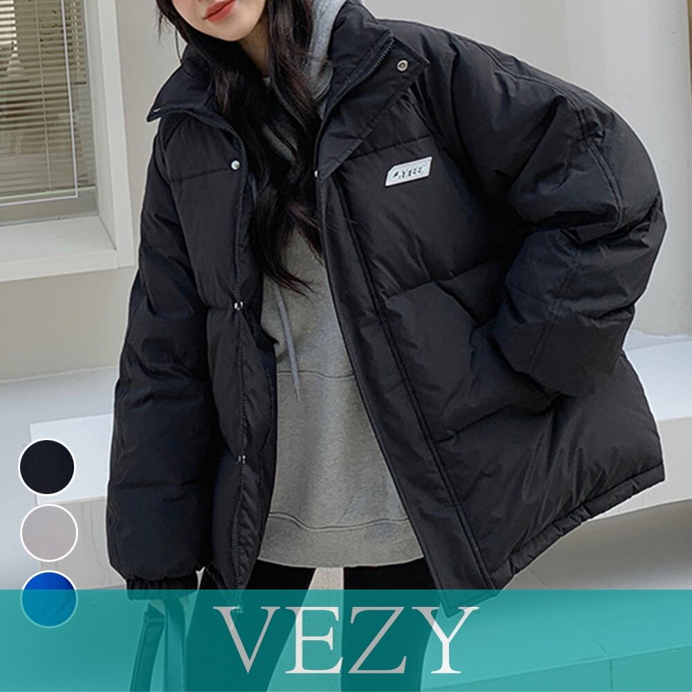 エコダウンジャケット 防寒防風中綿コート スタンドネック フェイクダウンコート ロゴ付きあったかいアウター カジュアル ブルゾン 体型カバージャンパー アウター コート ジャケット VEZY ベジー ItemNo.【18335054 】