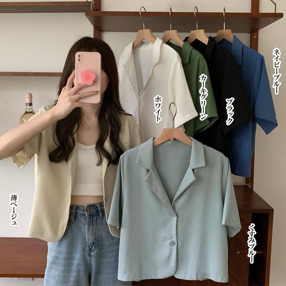 韓国ファッション白 夏服オフィス羽織黒 ブラウス開襟シャツ