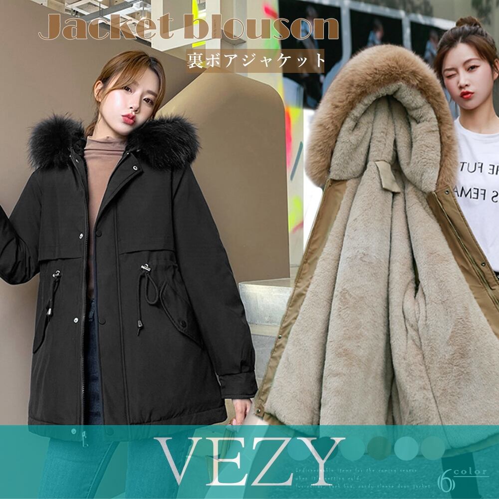 フード付き ジャケット 裏ボアフーデッドコートファー付き フェイクファー パーカーコート ウエストマーク アウター あったか 防寒ジャンバー 韓国6色 アウター コート ジャケット VEZY ベジー ItemNo.【16553678 】