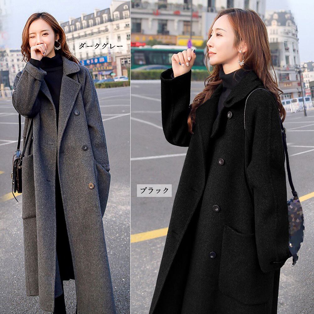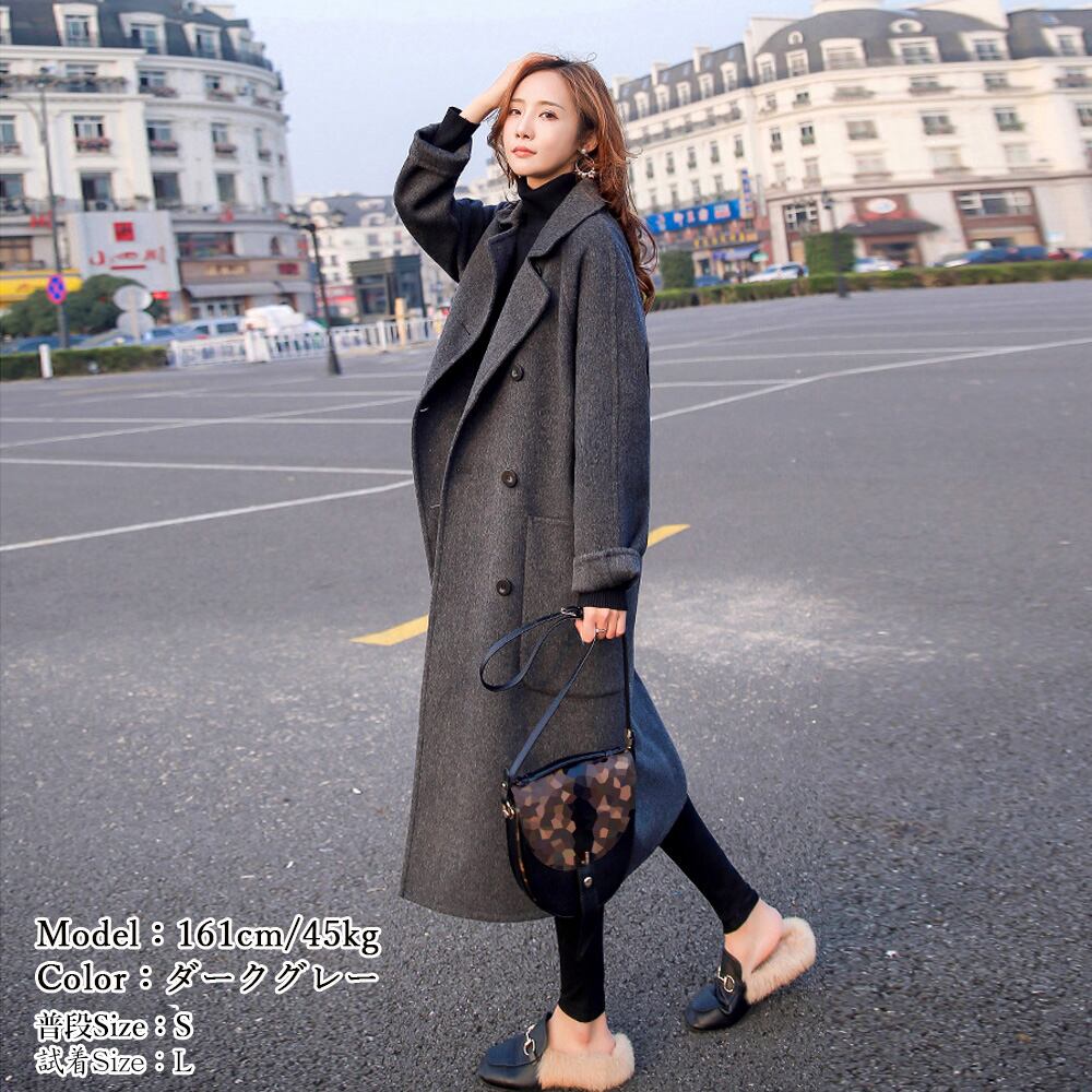ウールタッチ ロングコート ダブルブレスト 暖かい アウター カジュアル きれいめ 通勤 ビジネス ol 大人 女性 服