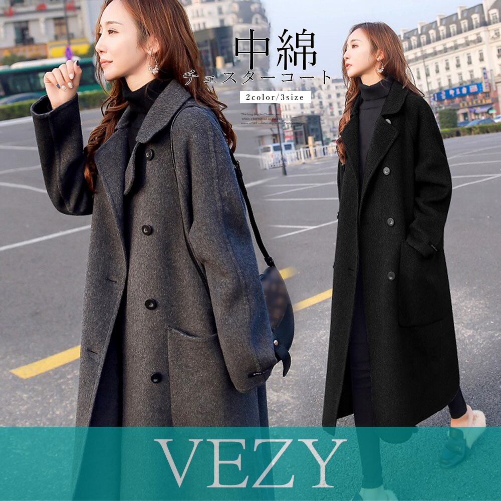中綿 チェスターコート 韓国 ウールタッチ ロングコート ダブルブレスト 暖かい アウター カジュアル きれいめ 通勤 ビジネス ol 大人 女性 服 アウター コート ジャケット VEZY ベジー ItemNo.【16467136 】