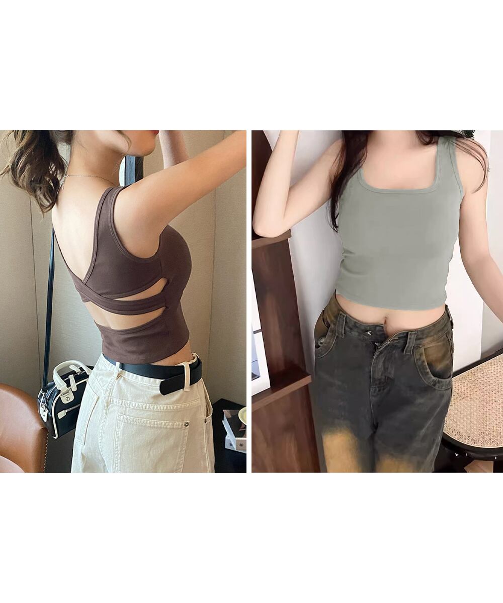 レディース バッククロス クロップドインナートップス 大人カジュアル ショート丈夏服 へそ出し セクシーインナーウェア