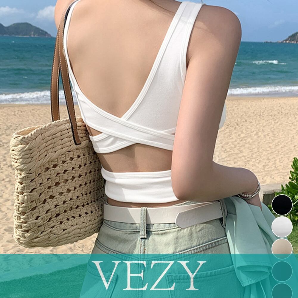 カップ付きタンクトップ背中あきブラトップ バッククロス クロップドインナートップス 大人カジュアル ショート丈夏服 へそ出し セクシーインナーウェアタンクトップ インナーVEZY ベジー ItemNo.【22389357】