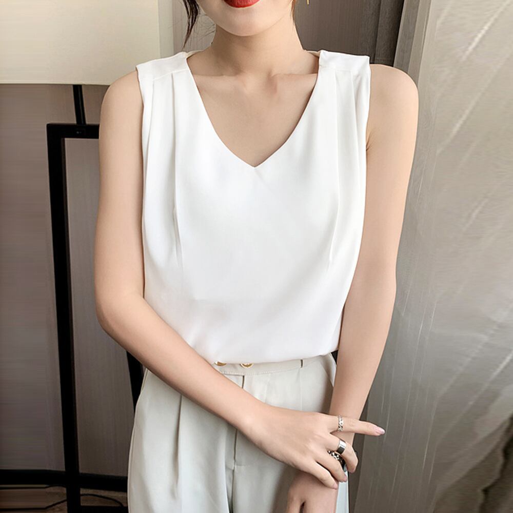 Vネック ゆったり ノースリーブトップス 涼しい 薄手 きれいめ ブラウス オフィスカジュアル 体型カバー 重ね着