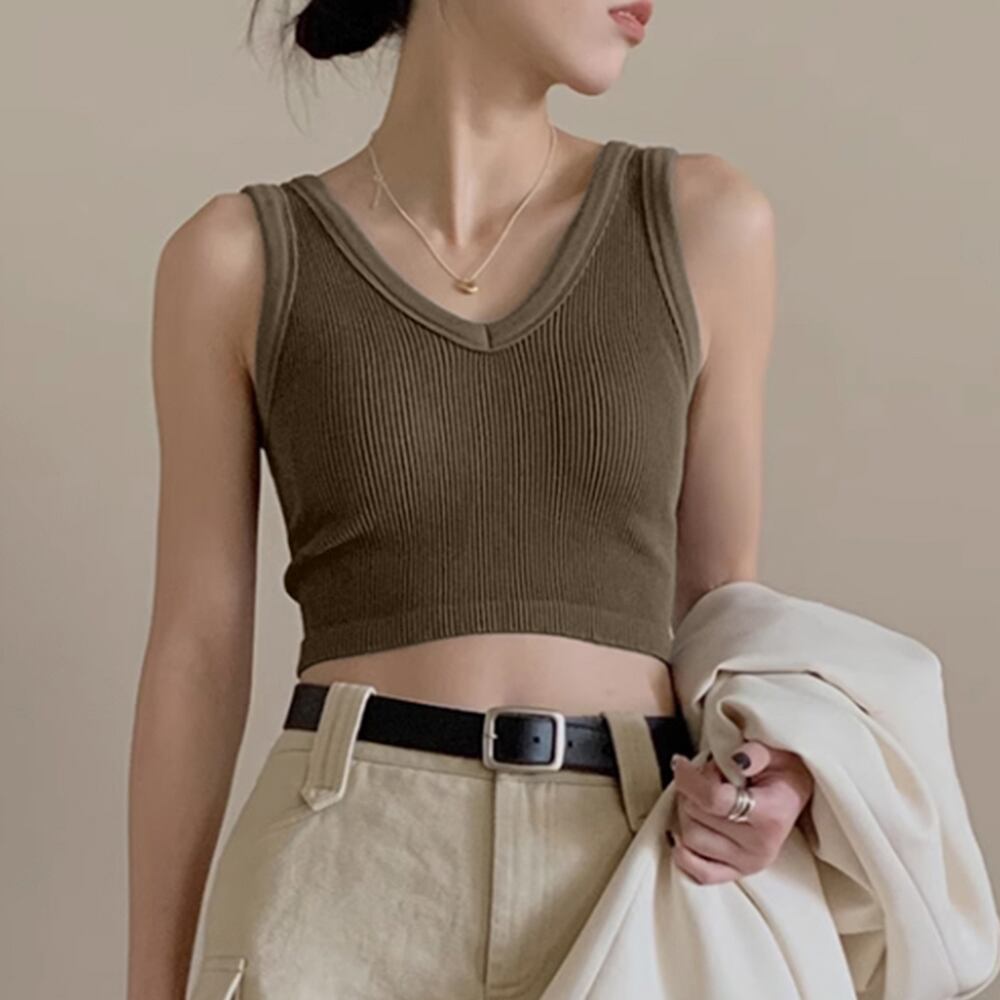 カップ付き タンクトップ ショート丈 Vネック 無地 キャミソール へそ出し 重ね着 着回し 大人 カジュアル セクシー 韓国ファッションタンクトップ インナーVEZY ベジー ItemNo.【19473455】