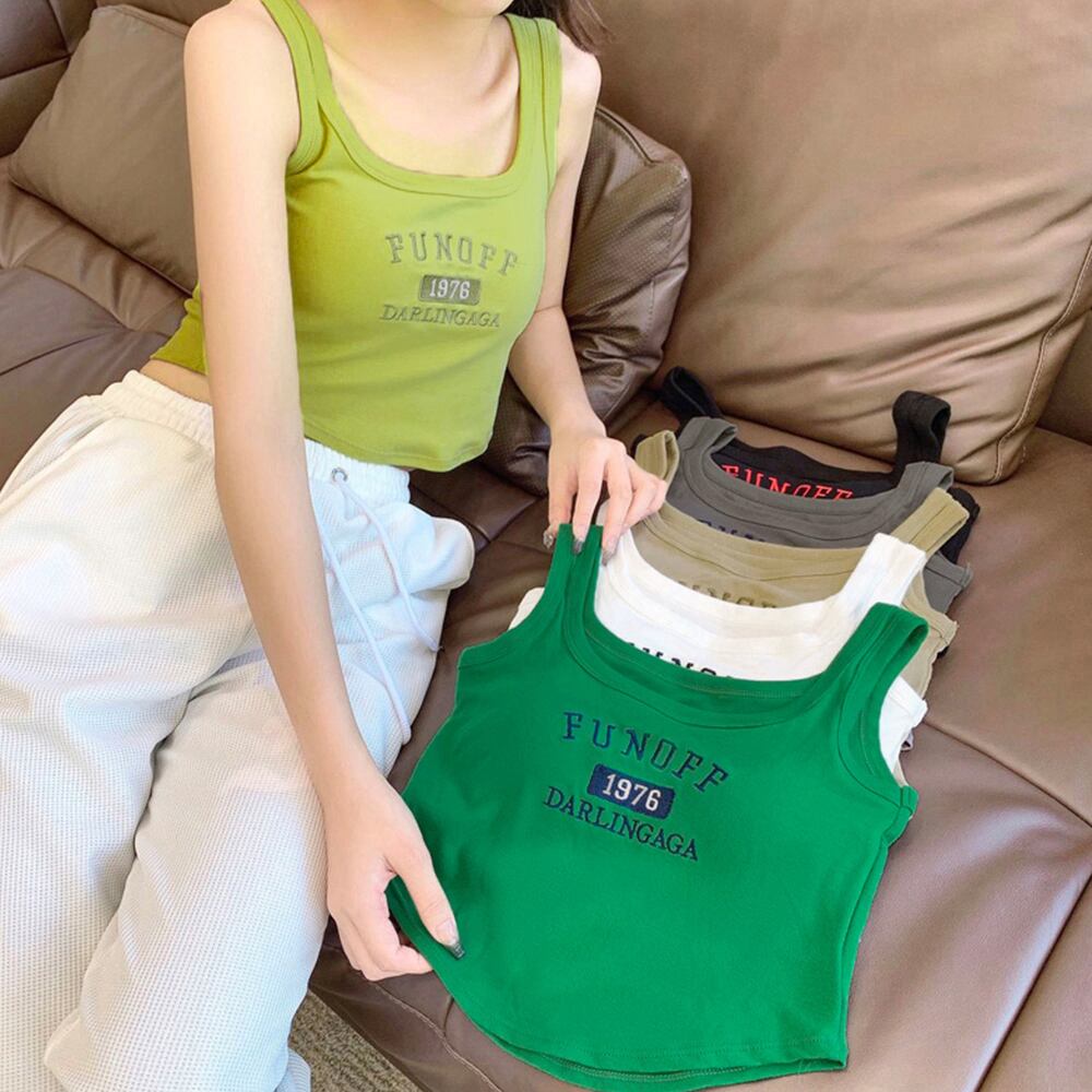 英字プリント 短丈タンクトップ 韓国ファッション ストリート ショート丈トップス ラウンドヘム ちびタンクトップセクシー