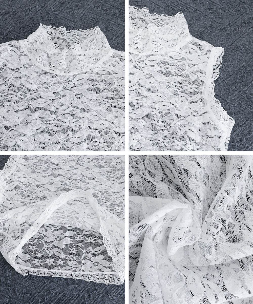 付け襟 花柄レース インナートップス韓国 スタンドカラー 総レースブラウス フリルネック 重ね着レースシャツ きれいめ つけ襟フェミニンシャツつけ衿 つけえり白黒タンクトップ インナーVEZY ベジー ItemNo.【18551912】