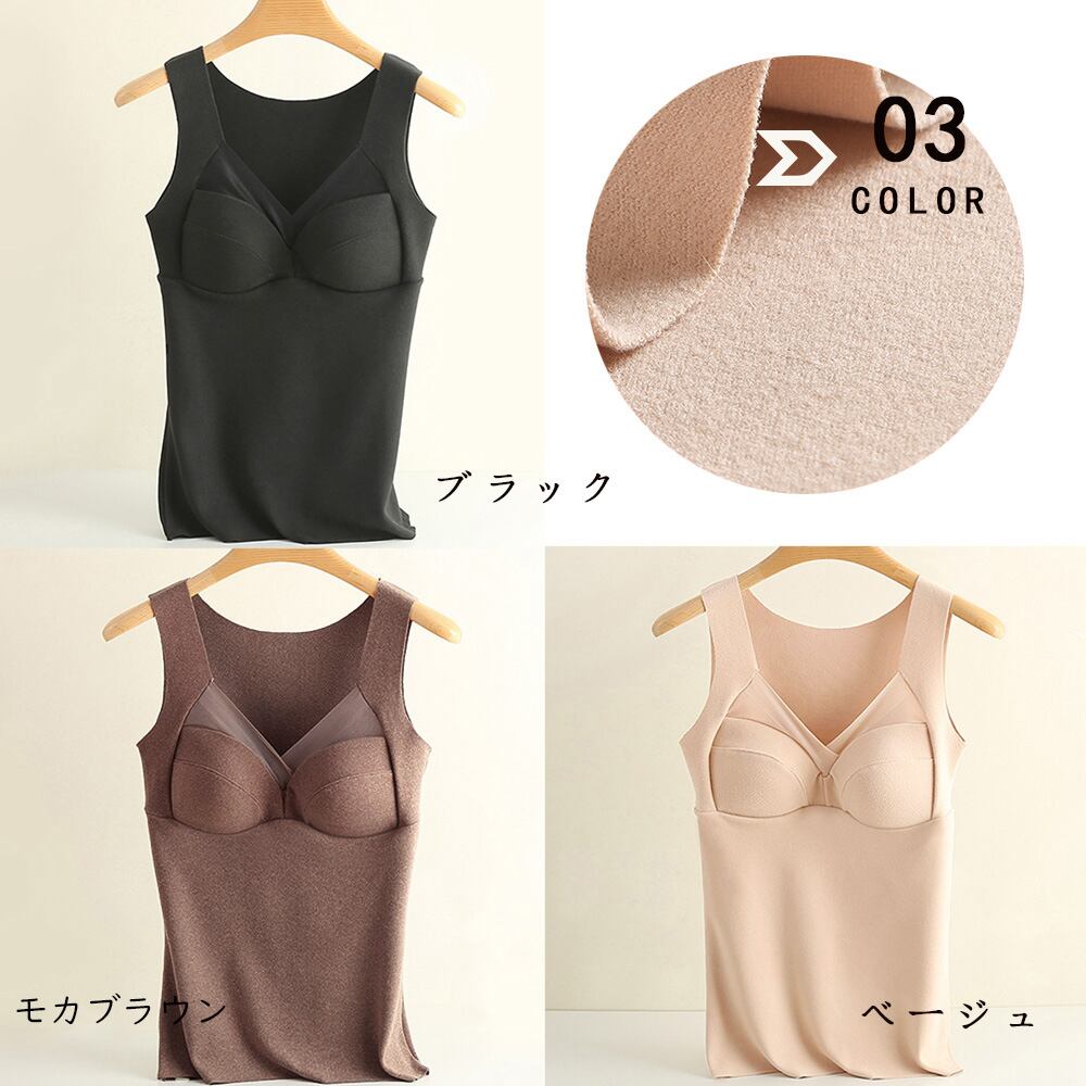 発熱タンクトップ 保温防寒 カップ付き インナートップ 重ね着 冷え対策ブラトップ 暖かい 防寒 キャミソール 発熱インナー冬 おしゃれナイトブラタンクトップ インナーVEZY ベジー ItemNo.【18312043】