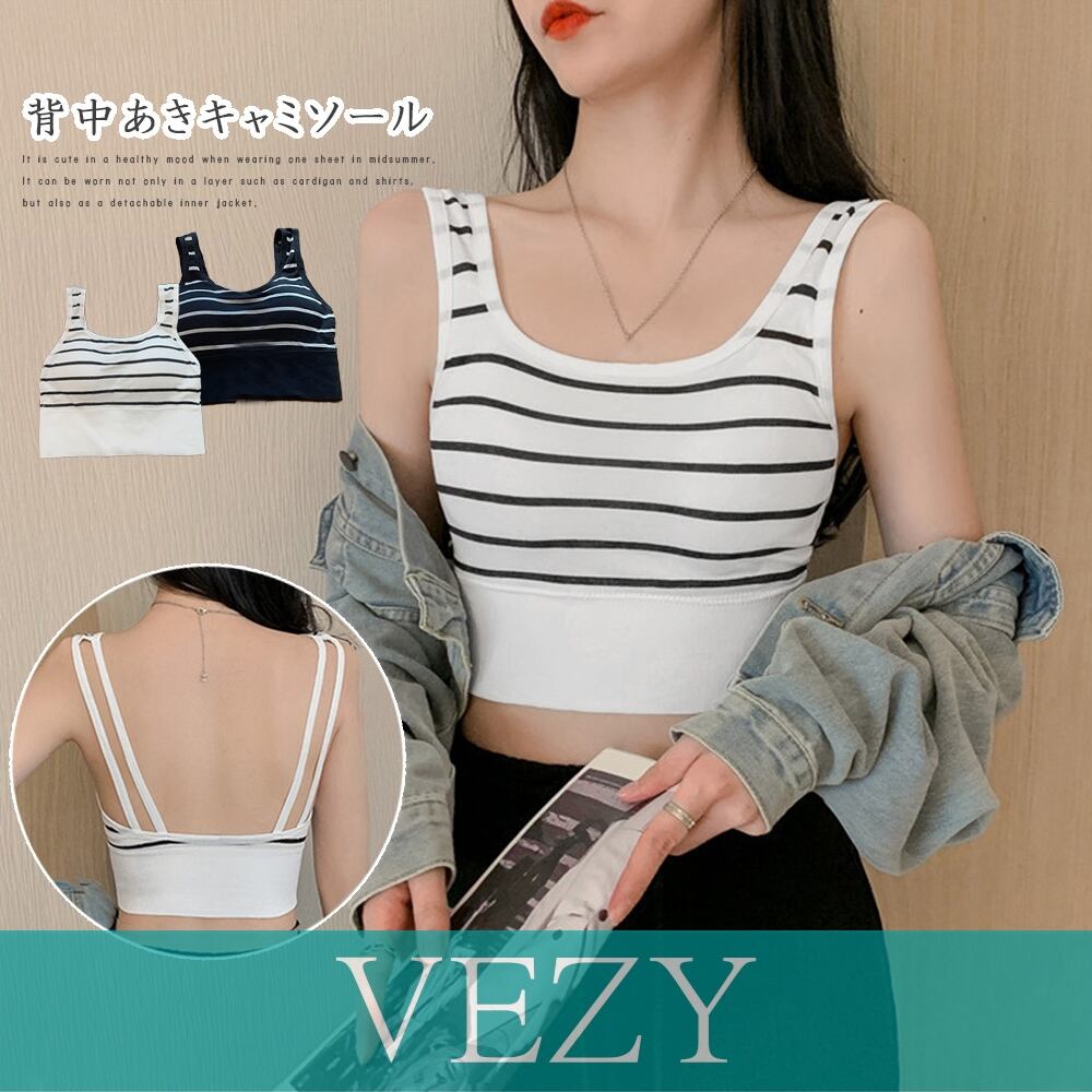 カップ付きタンクトップ セクシー バックオープン インナー ストライプ トップス ショート丈 キャミ カジュアル 人気下着タンクトップ インナーVEZY ベジー ItemNo.【17826310】