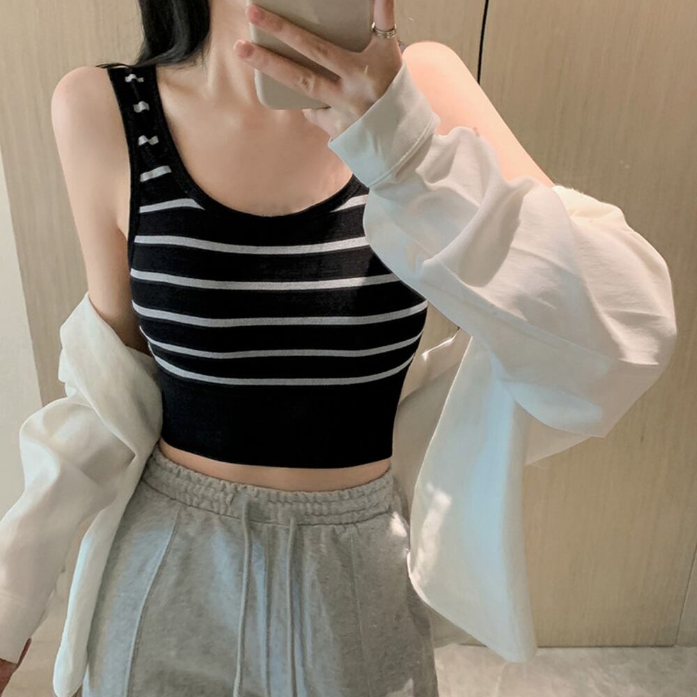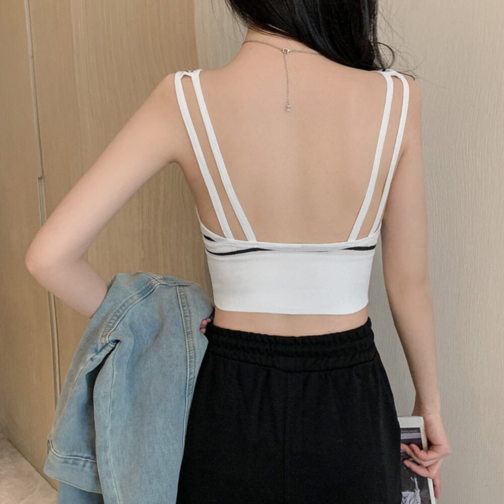 セクシー バックオープン インナー ストライプ トップス ショート丈 キャミ カジュアル 人気下着