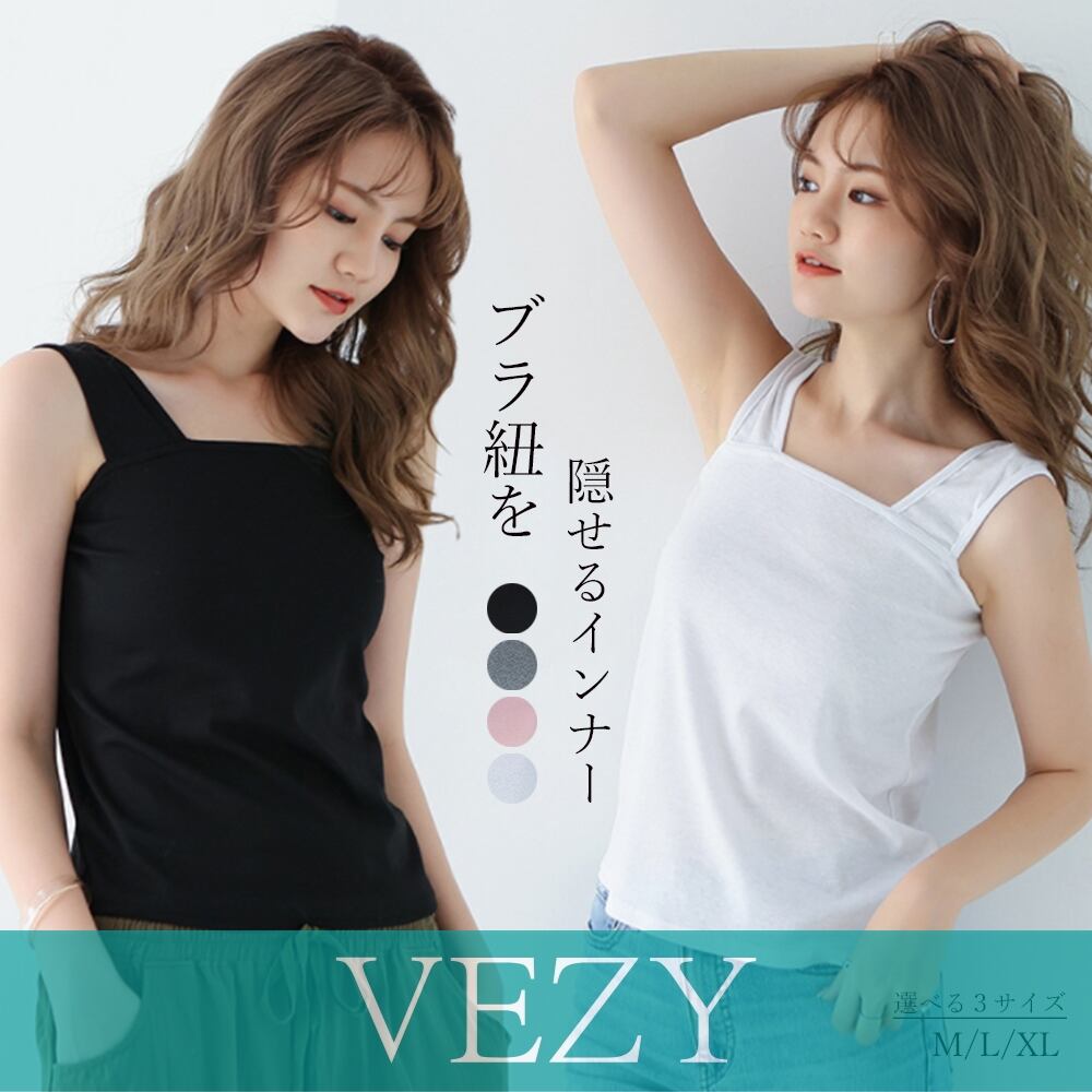 ブラ紐隠しインナー タンクトップ 無地 重ね着 インナートップス ノースリーブ スクエアネック キャミソール シンプルインナー チラ見え防止タンクトップ インナーVEZY ベジー ItemNo.【15845713】