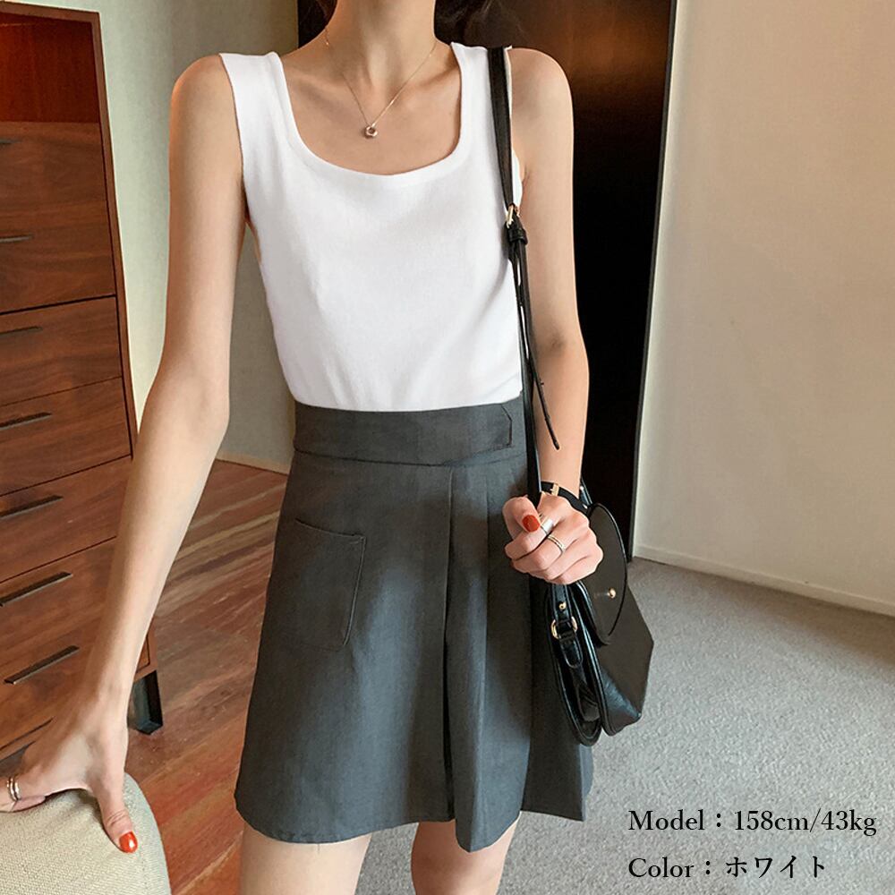 12色を展開し、カラーバリエーション豊富のUネックニットタンクトップ