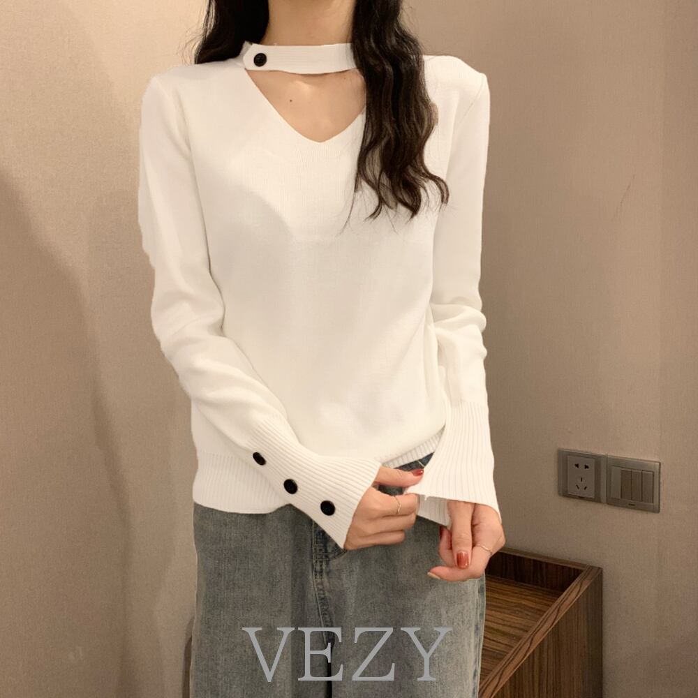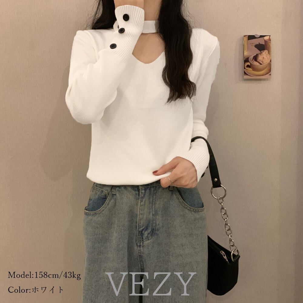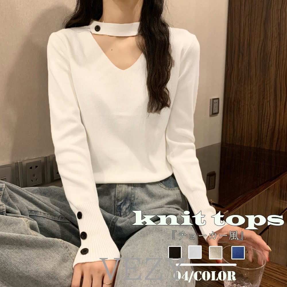 チョーカー風ニット 着やせ ニットセーター フロントVネックカット ニットウエア 長袖 ニットインナー プルオーバー レディース ニット セーター lstpベジー VEZY ItemNo.【16496431 】