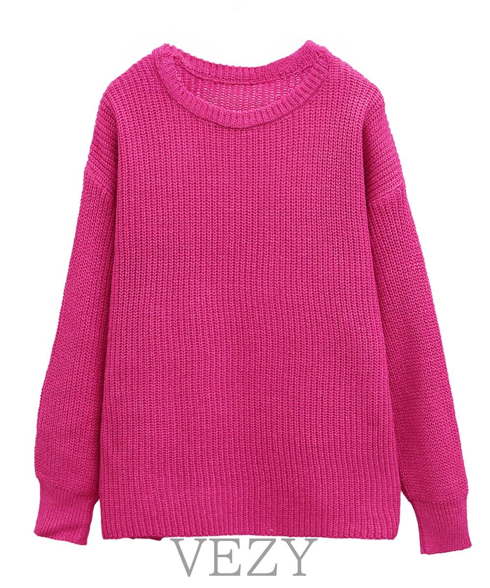 ニットセーター 長袖 秋冬 ニットトップス カラーニット 無地クルーネック 体型カバー シンプルカジュアル プルオーバー きれいめ ゆったりセーター レディース ニット セーター lstpベジー VEZY ItemNo.【20040801 】