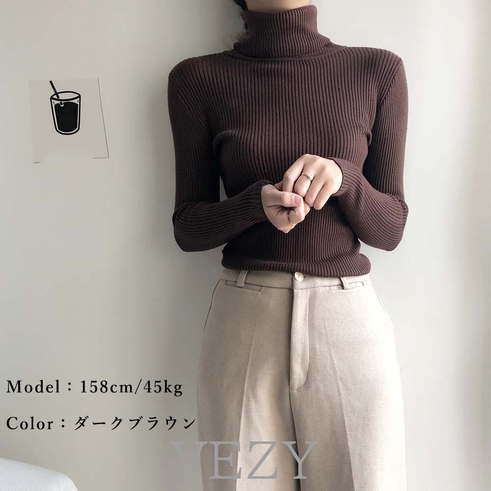 リブ ニットトップス タートルネック無地 おしゃれ 長袖 ニットカットソー 着やせ ハイネック ニットプルオーバー 秋冬タイトニット 細身 インナートップス レディース ニット セーター lstpベジー VEZY ItemNo.【16553682 】