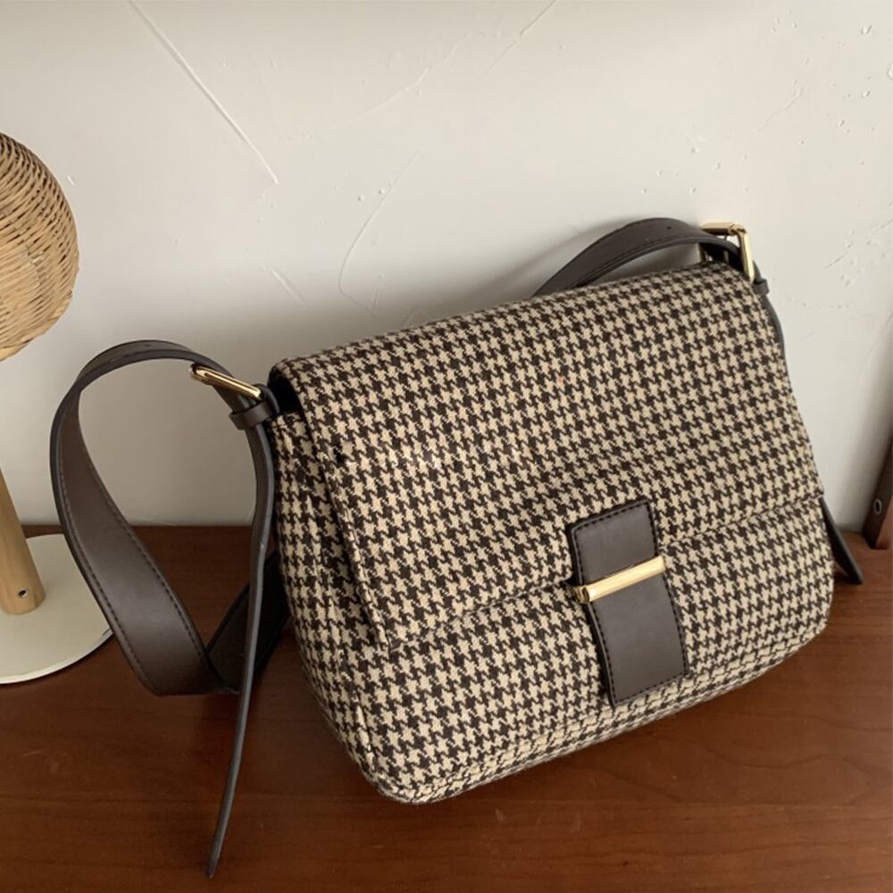 千鳥格子 千鳥柄 ショルダーバッグ 女性 韓国 斜めがけバッグ 大人 ツイード風 フェイクレザー 肩掛けカバン スクエア型 カジュアルバッグ おしゃれ BAG 鞄 バッグ bgベジー VEZY ItemNo.【16012383 】