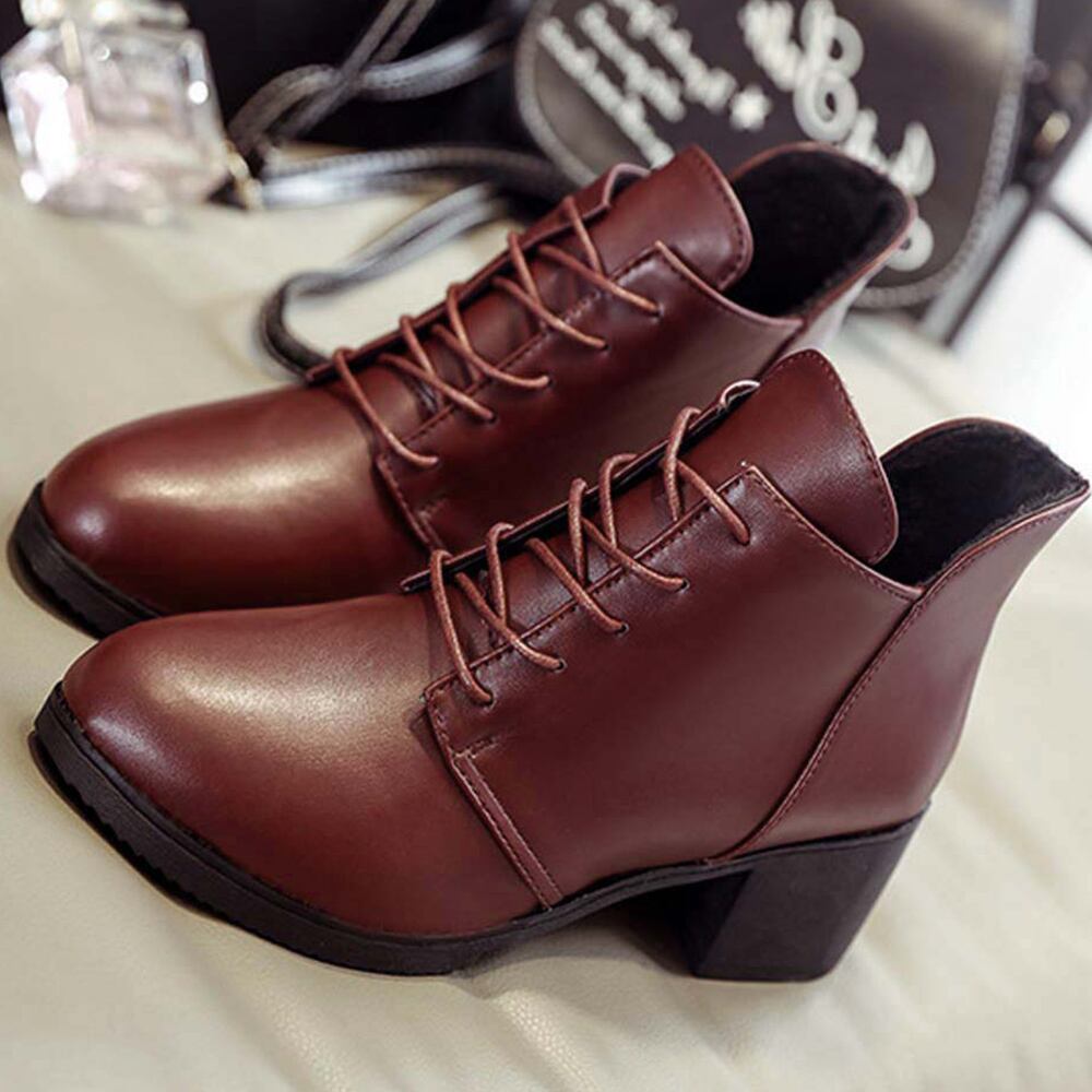 雨でも気にせず履けるロングシーズン使える合皮編み上げショートブーツ