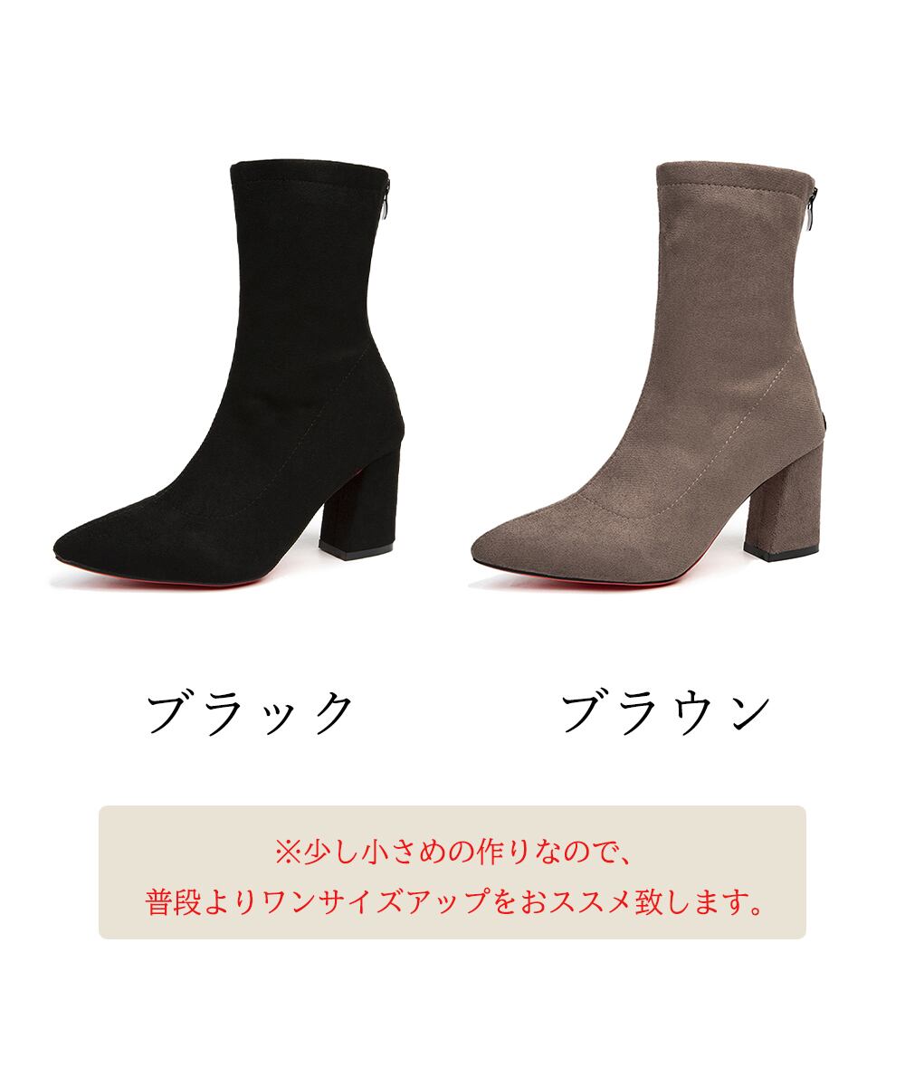 ブーティ ポインテッドトゥ 太ヒール 無地 美脚 通勤 OL 韓国 きれい 大人 おしゃれ シンプル 痛くない