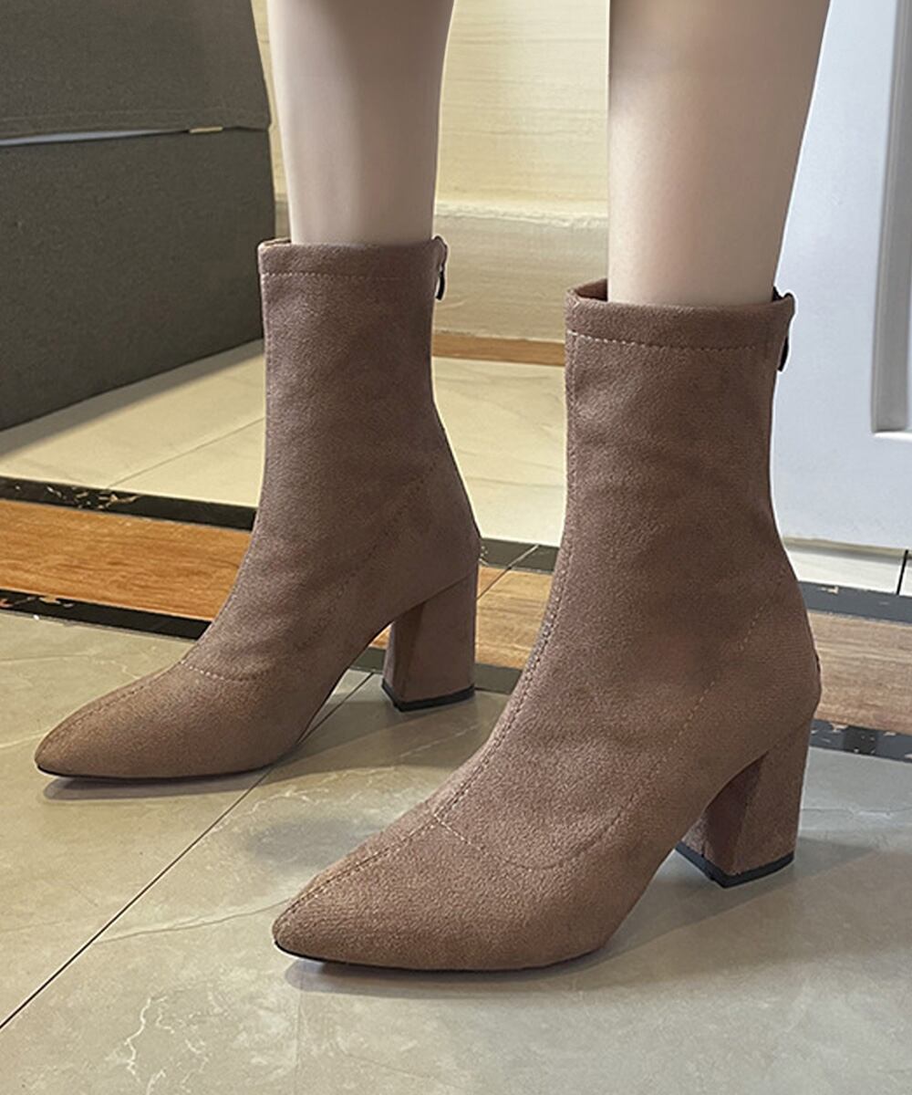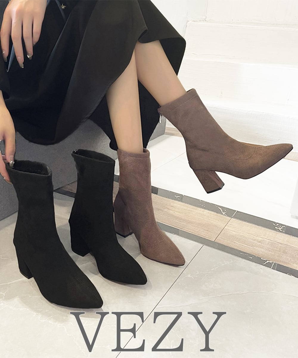ショートブーツ スエード ブーティ ポインテッドトゥ 太ヒール 無地 美脚 通勤 OL 韓国 きれい 大人 おしゃれ シンプル 痛くない 靴 shoes シューズ ベジー VEZY ItemNo.【20169795 】