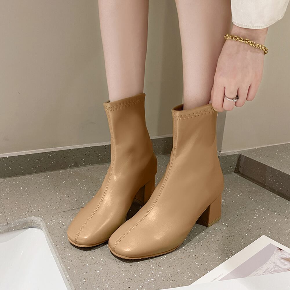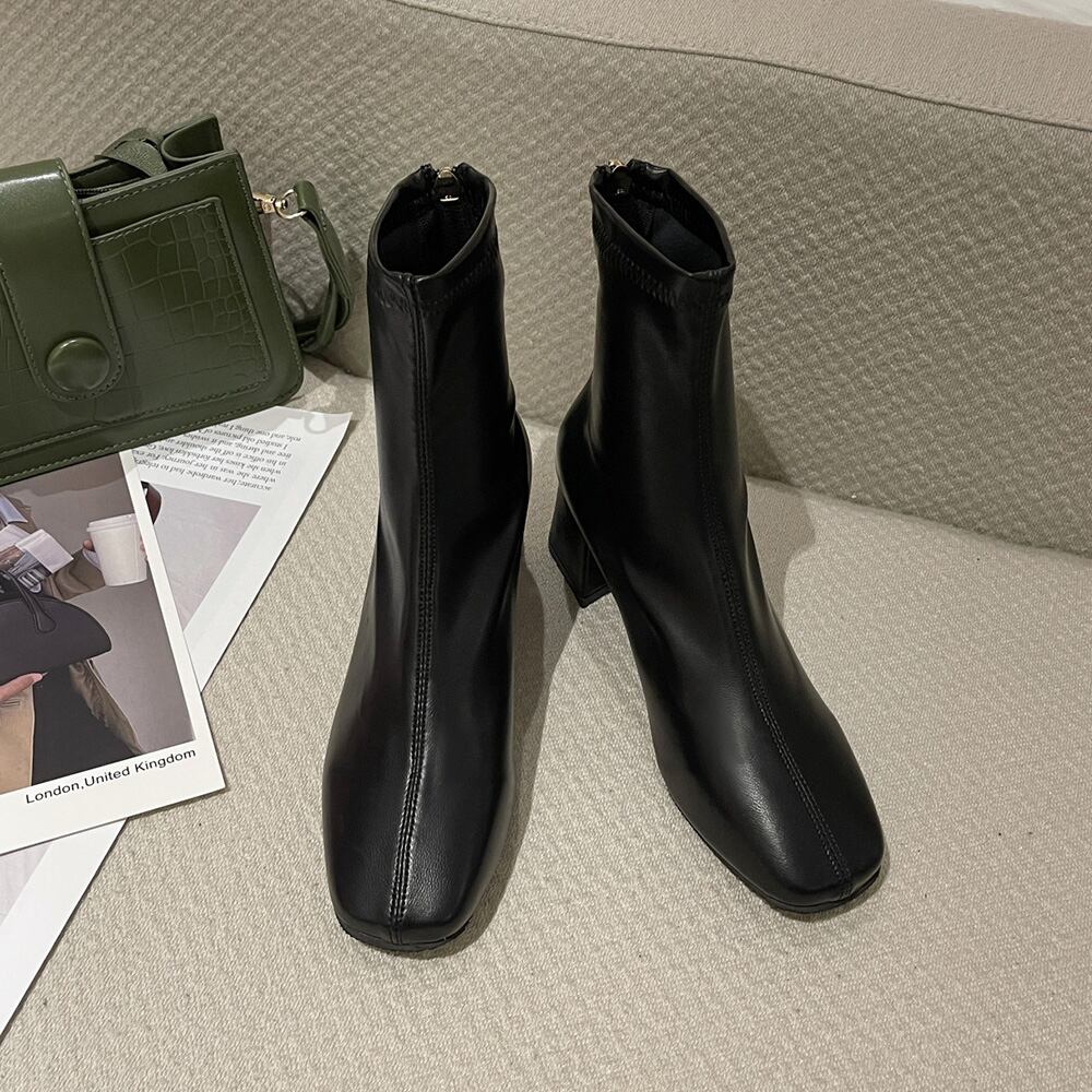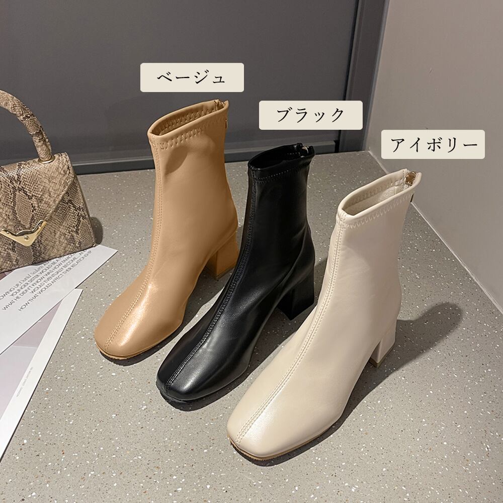 きれい 上品 カジュアル 大人 合皮 エコレザー 韓国 太ヒール 歩きやすい ショート丈 シンプル