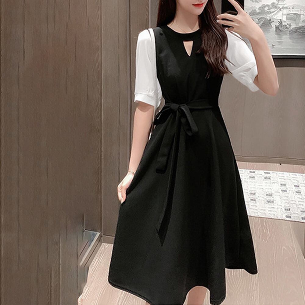 ワンピース 袖切り替えワンピ レトロ風 半袖 シフォンスリーブワンピース ウエストマーク ロングワンピース 体型カバー フレアワンピ ワンピース チュニック ベジー VEZY ItemNo.【15542065 】