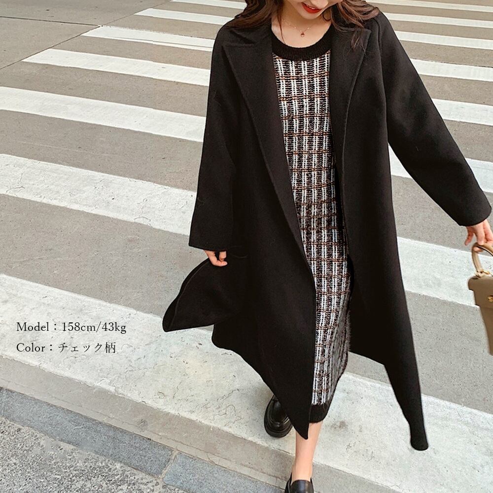 ドッキングワンピース 長袖 レディース レイヤード風 チェック柄ワンピ オシャレ ロングワンピース 秋冬 韓国 大人