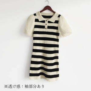 ワンピース ボーダー柄 ニットワンピース 襟付き サマーニットワンピ 袖切り替え ポロワンピース おしゃれ カジュアル 半袖春夏ワンピース 体型カバー ワンピース チュニック ベジー VEZY ItemNo.【19921868 】