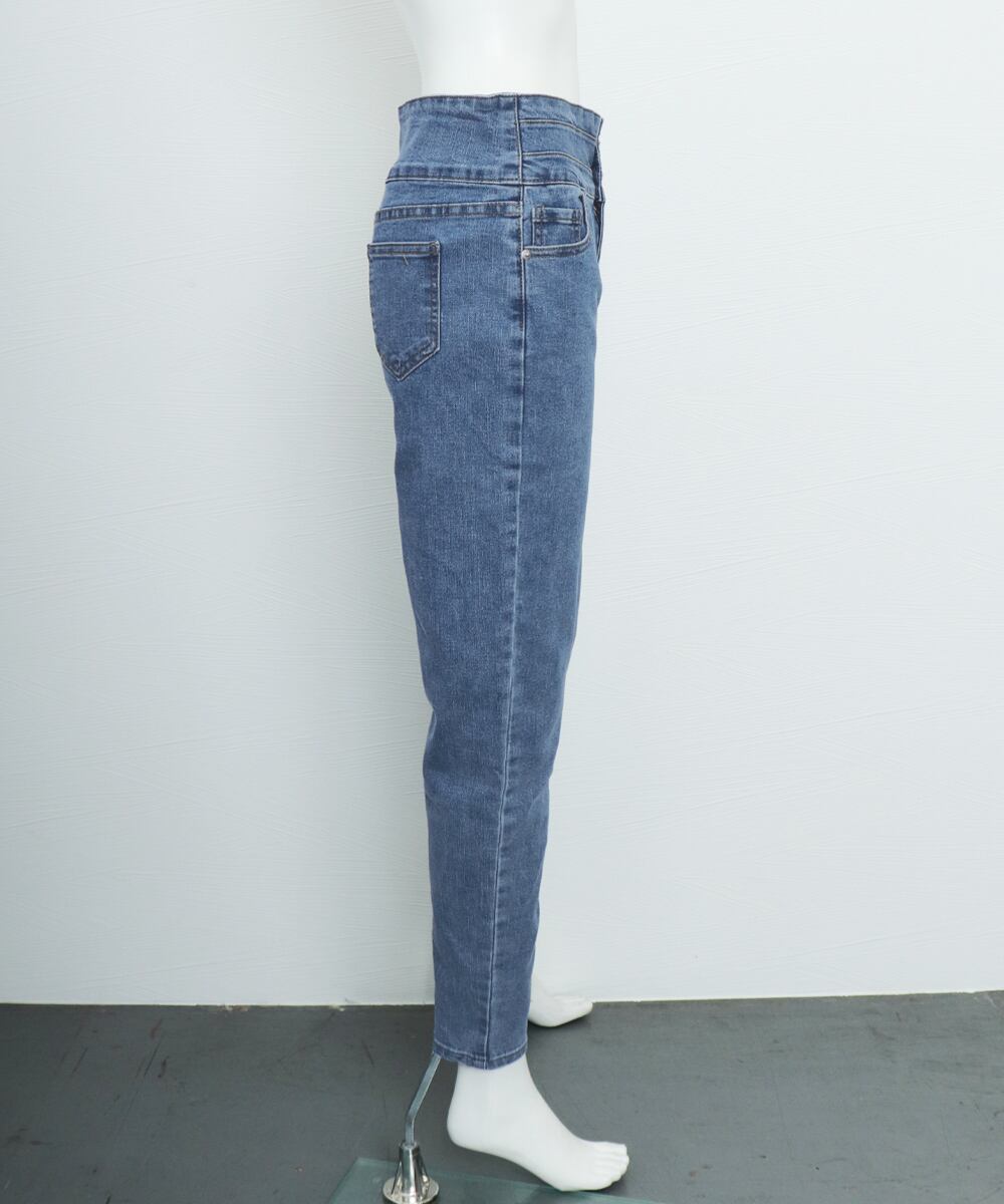ハイウエストデザインで3つ並んだボタンがアクセントになります。