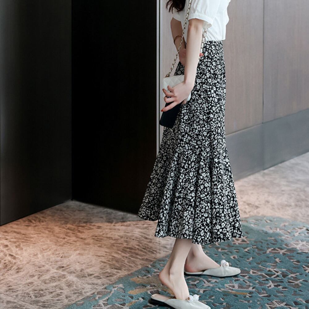 フレアスカート 小花柄マーメイドスカート 裏地付き バックゴムスカート ハイウエスト ミモレ丈スカート 韓国風きれいめ ボトムス お洒落楽ちんスカート ボトムス パンツ スカート ベジー VEZY ItemNo.【19523272 】